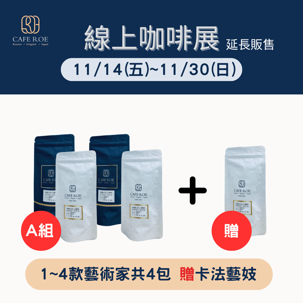 A組/買4送1 4款藝術家 (藝術家1234號) 送1款卡法藝妓 (共5款咖啡豆) 展場價 $1000