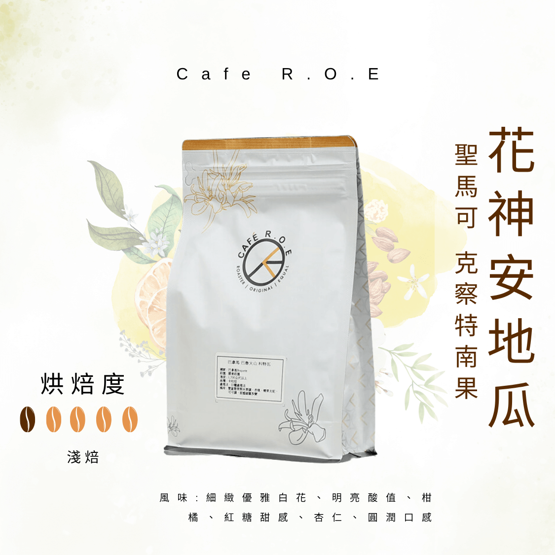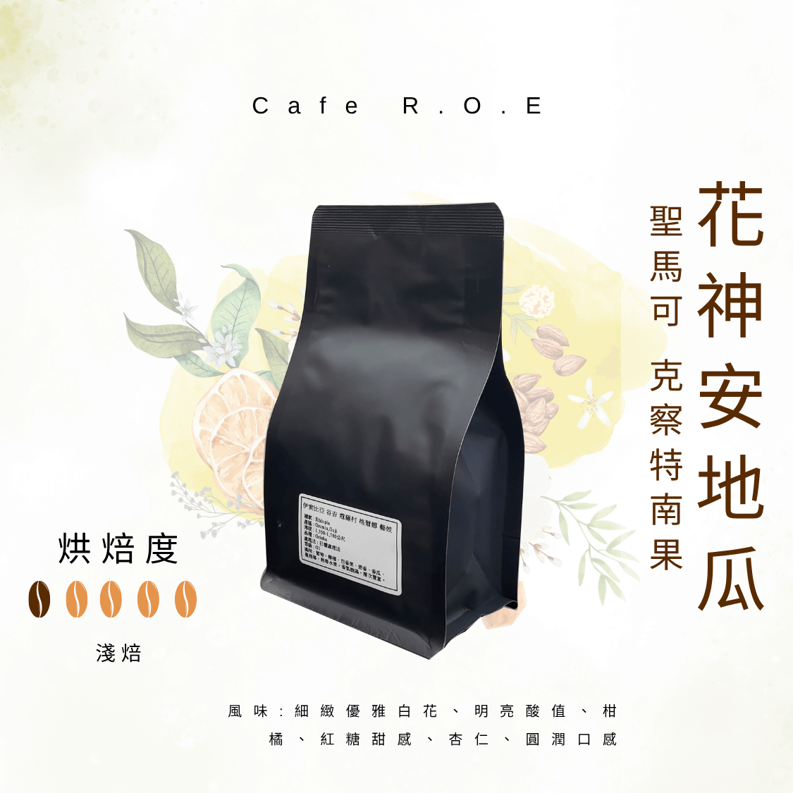風味:細緻優雅白花、明亮酸值、柑橘、紅糖甜感、杏仁、圓潤口感